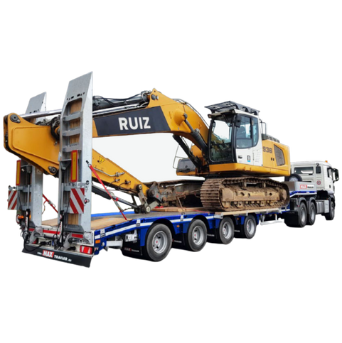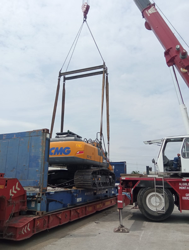 Transporte de maquinarias pesadas, como excavadoras, retroexcavadoras, bulldozers, entre otras, desde una ubicación a otra a través de plataformas camas bajas y un izaje por medio de grúas telescópicas. Este servicio requiere de un equipo especializado y una flota de camiones y remolques adecuados para transportar maquinarias de gran tamaño y peso.